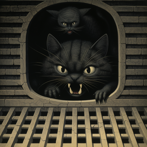 John Singer Sargent painting depicting front view our subject looks down at us, portrait of a black cat towering over us with a strong jaw, very realistic image and dramatic lighting deep blacks --ar 4:5