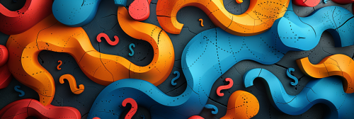 Give me a simple abstract graphic with bold solid flat shapes and no shading or shadowing. Should be composed entirely of question marks. --ar 3:1 --stylize 1000 --v 6.0