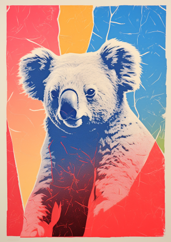 poster of a koala, rough block shapes, dazed, photocopy texture, grain texture, risograph print --ar 5:7