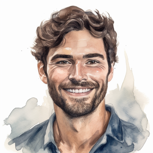 watercolor of a very attractive 30 year old white mexican man with short wavy dark hair, masculine and strong but youthful smile. He has model quality looks and a symmetrical face of beauty --s 250 --v 5.0