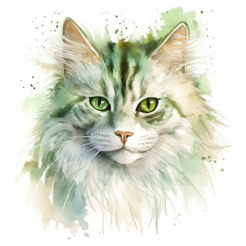 A cute illustration of a cat against a plain white background. The cat has an adorable, playful expression, with big, bright eyes and soft, round features. The style is simple and cartoonish, with soft lines and pastel colors that give the cat a sweet and endearing look. The white background keeps the focus on the charming cat, with no additional objects or distractions in the scen