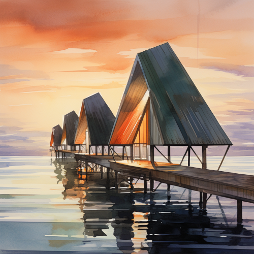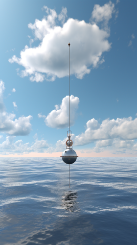 a b/w sketch of A series of floating sculptures anchored just below the water’s surface will emerge during low tide. These sculptures, crafted from recycled marine debris, represent the delicate balance between humanity and the ocean.