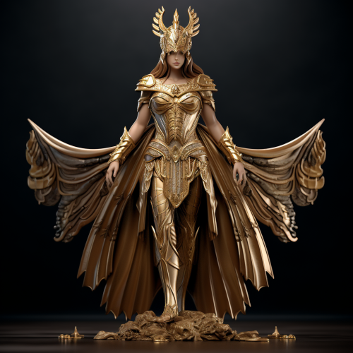 standing, full body shot, photorealistic, the goddess Pallas Athena in golden armor