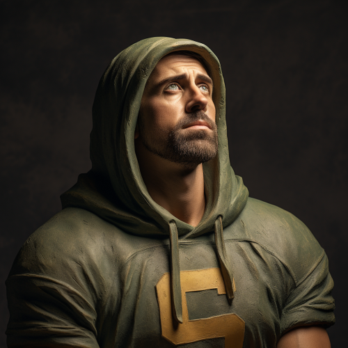 photography of a greek statue of NFL quarterback Aaron Rodgers, hyper realistic, 8k