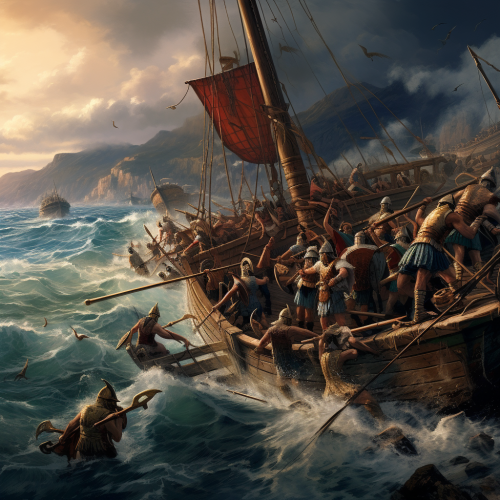 A Greek hoplite lifting an enemy off the ground with a spear, fierce expression, adrenaline-fueled moment. Hyper Realistic HD photos --v 6.1 --ar 16:9