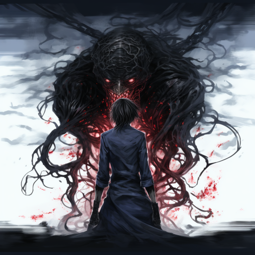 digital drawing of Guy with tentacles coming out of his back, in agony, art style of Sui Ishida, Sui Ishida inspired, tokyo ghoul re, Sui Ishida illustration, anime art, tokyo ghoul anime inspired