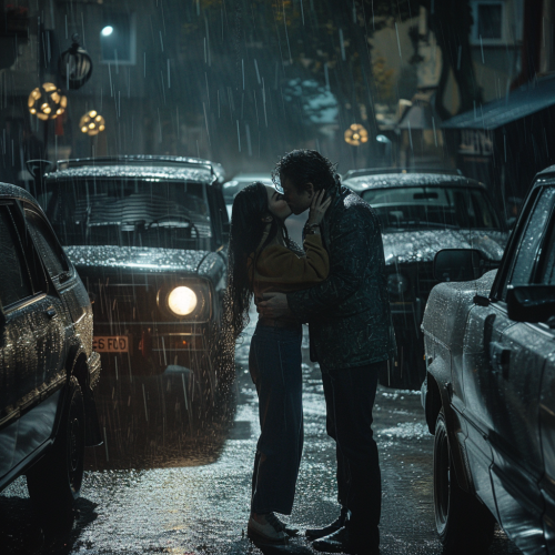 Bruce Wayne, wearing a dark suit and coat, standing in the middle of the rain at night during a funeral. The shot is from a distance, capturing the somber and emotional atmosphere. Bruce looks sad and emotional, with rain pouring down over him, adding a sense of heaviness and sorrow to the scene. The setting includes gravestones and a dark, wet environment, with subtle lighting from distant street lamps casting reflections on the wet ground. The sky is dark and cloudy, with a moody, overcast atmosphere. The style is inspired by Alex Ross's art, featuring realistic, highly detailed characters, dramatic lighting, and painterly textures. The rain adds texture and depth, emphasizing the emotional weight of the moment. The overall mood is melancholic, with a strong focus on Bruce's internal emotions and the mournful setting. --ar 9:16 --v 6.0