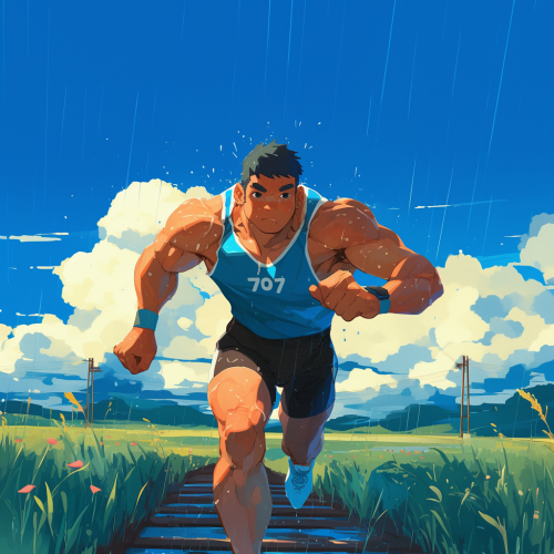A determined athlete training in a rain-soaked field, muscles straining as they push through the last set. The scene captures the essence of hard work and dedication, symbolizing that true achievement comes from perseverance and effort. --niji 6