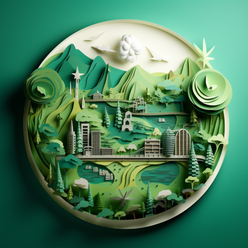 create a paper cut illustration of decarbonisation in green gradients high quality ar 16:9