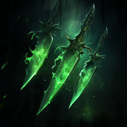 fantasy art, a table full of cracked green crystal, the crystals are glowing with harsh green glow, green sparks are arcing between the crystal shards, --ar 3:2