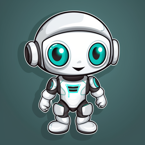 cute robot character with silver and teal coloring vector sticker design white outline