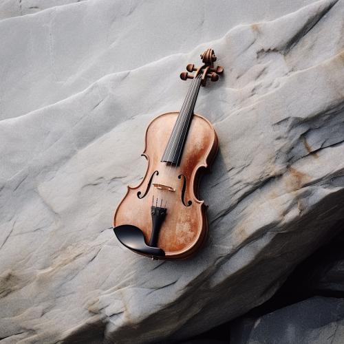 violin, minimalism and contemporary minimalist, organic stone carvings, calming and introspective aesthetic, earthy palette, natural simplicity, precise detailing, subtle warm tones, bright and airy, hyper realistic image, shot on a Nikon 35mm