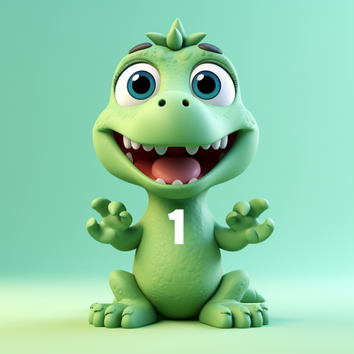 Clay animation, cute green child dinosaur (Tyrannosaurus) with big eyes, hail cute green child dinosaur, clay animation, smiling with mouth slightly open and looking up, light turquoise background, January calendar on wall, --v 5.2