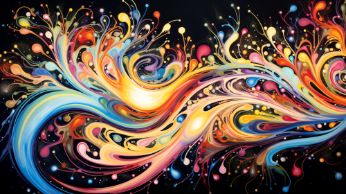 abstract dragon, stars composed of vibrant streaks of light. Its petals swirl and dance, evoking a sense of energy and movement. The environment surrounding it is a cosmic dreamscape, with stars and galaxies scattered across the backdrop. The mood is mesmerizing and otherworldly. Inspired by the works of Wassily Kandinsky, Bridget Riley, and the Op art movement. The camera settings are f/2.8, ISO 200, and 1/125 sec --ar 16:9
