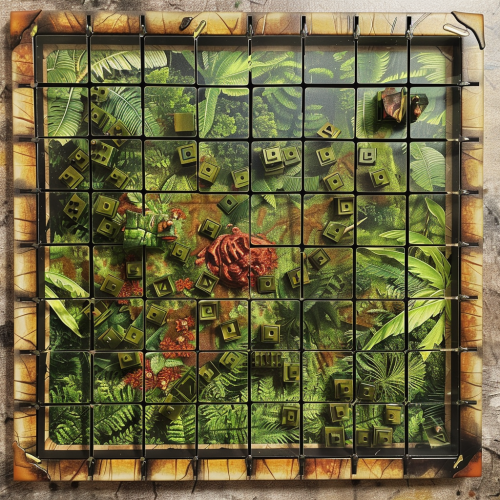 a 5x5 grid abstract strategy board game played in a jungle forest --s 50