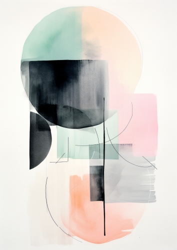 bauhaus abstract aquarel watercolor brush stroke abstract grey mint light pink --ar 5:7