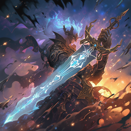 Grimdark mystic legendary omnipotent prince of light from Dungeons and Dragons 5th Edition wielding a massive vorpal blade, anime style, high fantasy, digital art, masterpiece painting, ultra detailed, ultra high definition, 8K resolution, 3D shading, superior quality, cover illustration, complex design, luminous highlights, rich vibrant colours, hyperrealistic, meticulously hyper detailed, high contrast, artstation --niji 5