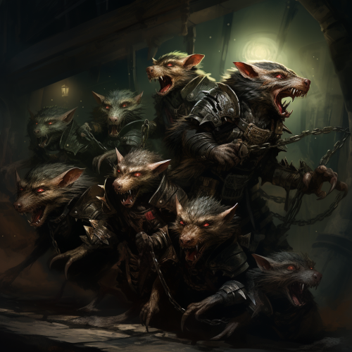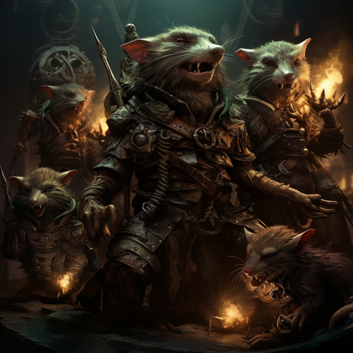 Grimdark mystic death squad of skaven gutter assassins, high fantasy, digital art, masterpiece painting, ultra detailed, ultra high definition, 8K resolution, 3D shading, superior quality, cover illustration, complex design, rich vibrant colours, equipment highlights, hyperrealistic, meticulously hyper detailed, artstation