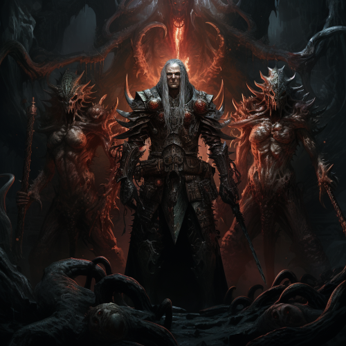 Grimdark cosmic eldritch squad of universal butchers, horror fantasy, digital art, masterpiece painting, ultra detailed, ultra high definition, 8K resolution, 3D shading, superior quality, cover illustration, complex design, luminous highlights, rich vibrant colours, hyperrealistic, meticulously hyper detailed, artstation