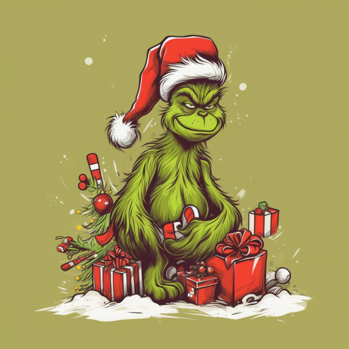 the grinch with christmas gifts with white background tshirt design --v 5.0