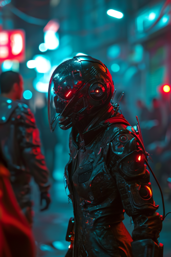 create a human face with a robot back head. theme is cyberpunk --v 5.2