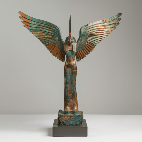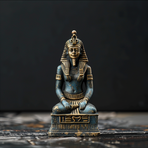 egyptian godess minature statue in a reinancence style in frontal view with a balck background, high resolution, hightec