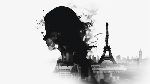 a simple-shaped kid-drawn silhouette of an airship flying in front of the sun and over a group of individuals wearing 1899 bérets as in Peaky Blinders, standing next to each other as characters wearing long coats, shirt and suspenders, on a cinematic Star Wars stylized poster image, darkness and lightness, no details, faces cannot be seen because of the shadow of their own silhouettes, extreme contrast with the bright light coming from behind, in the background the silhouette of the Eiffel Tower and stylized mix of 1919 transsiberian train, train station under the snow, aviation hangar in the forest, old parisian horse cabs, fog, clouds, Eiffel Tower and haussmannian rooftops in the background, bright round sun, scene taken at down with the sun low on the horizon, play with color contrast, shades of yellow red and green, light and darkness to conveil a sense of mystery, adventure and epicness --v 6.0 --style raw