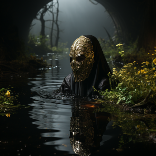 In the stillness of secret waters, eyes peer back, silent, wise, eternal. Their gaze reflects across the water murmur, a mirror to ancient souls, carrying secrets whispered by time. As the water trembles with their reflection, the veil between worlds blurs, and the wisdom of the ages flows like a hidden current beneath the surface. --s 750 --v 5.2