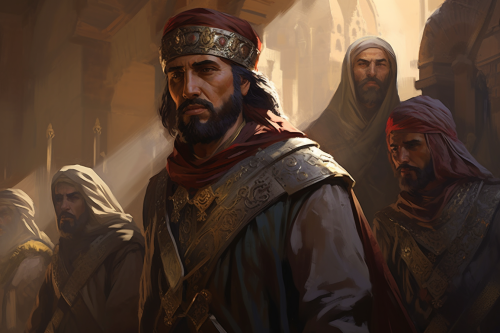 A towering, weathered wooden watchtower rises above a foggy, frost-covered forest, enveloped in an eerie mist. The scene is dimly lit by a pale, cold light filtering through the fog. Two undead figures, dressed in worn, ancient armor, stand vigilantly on the tower platform, alongside dark-clad Ambit guards wielding spears and torches. The entire landscape is silent and haunting, with frost clinging to the wood and the undead’s hollow eyes glowing faintly in the fog. Heavy mist curls around the tower base, and an oppressive cold fills the air – dark fantasy, Symbaroum-inspired, cinematic atmosphere --ar 16:9 --s 750