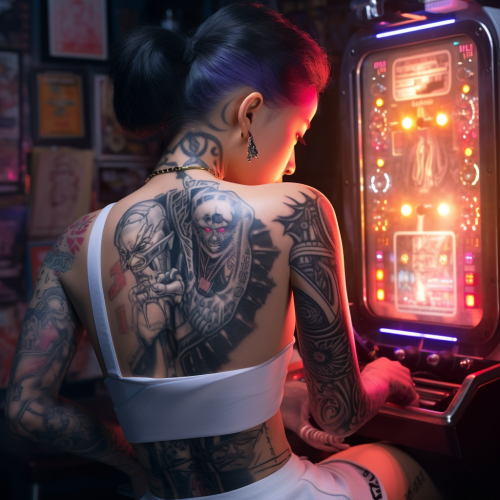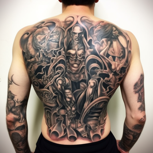 a back tattoo of the back, the last judgment by michelangelo, ink --s 50 --style raw