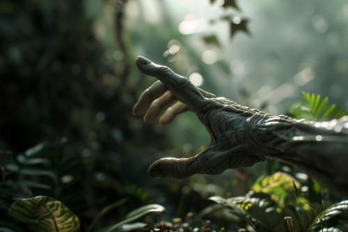 the collaborative vision between Wess Anderson and Eugenio Recuenco recreates the arm of ET. The scene is artistically photographed thanks to a collaboration between Wess Anderson and Eugenio Recuenco. Captured with a Sony Alpha a7 III camera, high detail, high resolution, realistic, wide angle, raw style, 4k, --ar 3:2 --v 6.0