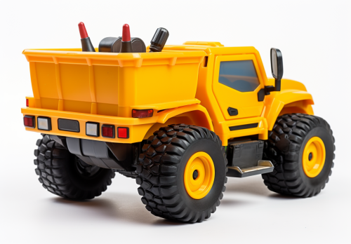 the model sheet of a colorful child's toy remote controlled construction truck - RC construction truck rear view, straight on, no angle --ar 13:9