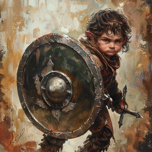 dungeons and dragons, halfling hobbit paladin, wielding a shield