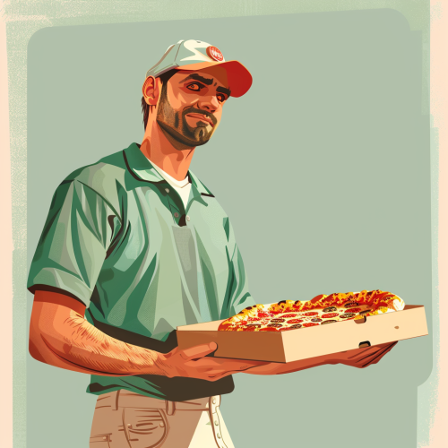 movie still, documentary photography, editorial, Martin Parr style shot of child and his father, both dressed in vampire costumes for Halloween, standing at the front door of their house, receiving their food delivery from an Uber Eats delivery person. The father and son are smiling as they take the order, while the delivery person holds a large square bag on their back, typical of Uber Eats drivers. The scene is set with dim Halloween lighting, pumpkins and spooky decorations in the background, creating a fun and festive atmosphere. Cinematic lighting, intricate details, Halloween-themed --ar 16:9