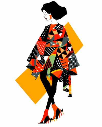 fashion design sketch of a Halloween fashionista, in the fauvist style of Anastasia Helter, clipart, anastasy_helter style inspired, loose cubism, simple vector sketch, brutalist design, white background, --ar 4:5 --s 50