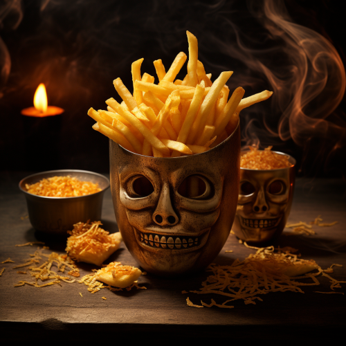 a bunch of very delicious looking fries, but they are hang on a wall in a frame --v 6.0
