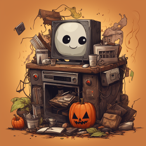Cute halloween elements in the background and e-waste kept in the centre as the main element