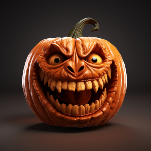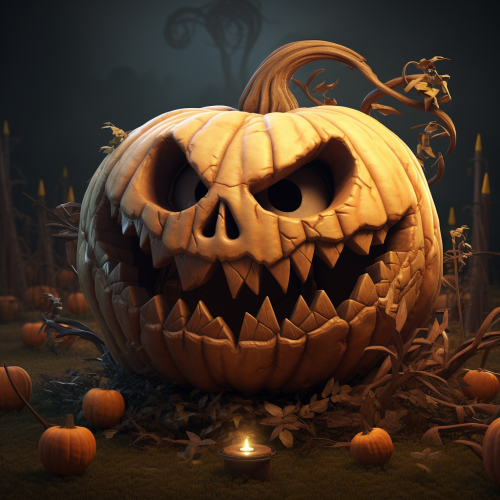 a giant Halloween pumpkin, in the style of Tim Burton characters, spooky, octane render. --v 5.2