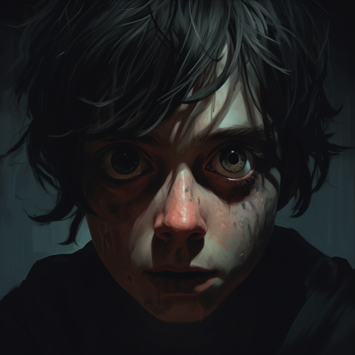 dark and abandoned hotel room with an evil ghostly hand coming out of the floor, creepy and sinister, drawn in red and blue crayon