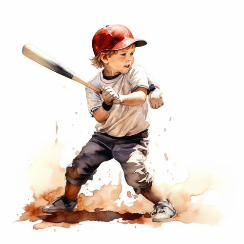 Kid hitting baseball, photorealistic - watercolor style, white background