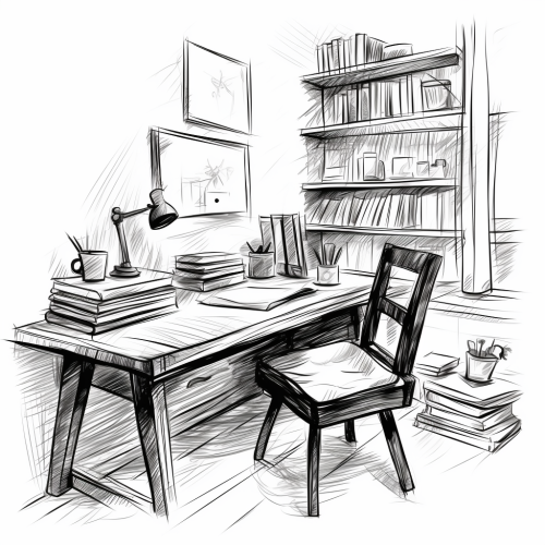 study, no people - hand drawn sketch vector illustration- black and white --style raw