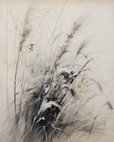 black Natural plants, herbage, vegetation sketch hand made drawing in style of Toulouse-Lautrec, Antonio Lopez, klimt, colored with pastel chalk, charcoal, pencil color, soft drawing, background white --c 10 --ar 4:5