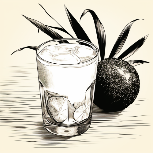 hand drawn sketch of a Coquito drink, high contrast, black and white