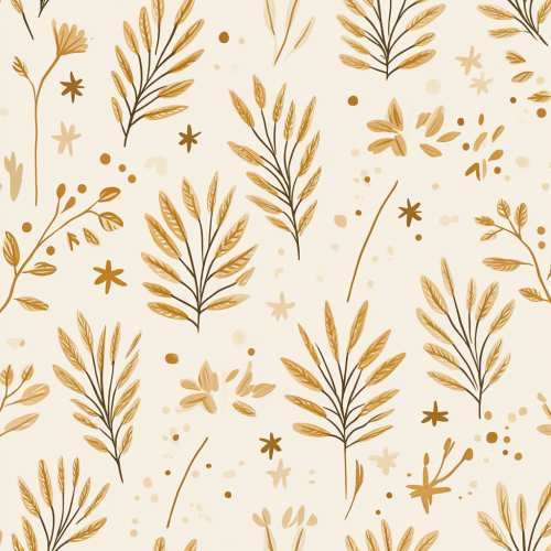 A seamless and abstract pattern featuring rice grains and wheat stalks, inspired by traditional Korean farming symbols. The design should have a minimalist, hand-drawn look, with soft curves and organic shapes. Incorporate small geometric stars or flowers as accents, to symbolize prosperity and abundance in Korean culture. Use a light, bright color palette of ivory, soft gold, and pastel shades, giving the pattern a clean and modern aesthetic. The overall design should be playful yet elegant, perfect for a modern textile or fabric pattern. black and white