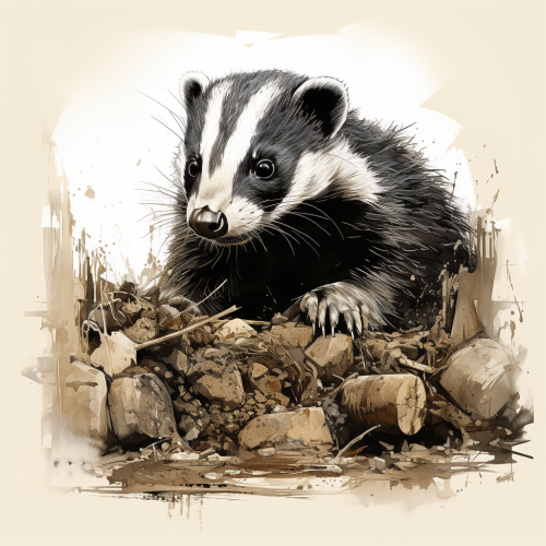 a badger with worms next to it. illustration. minimalistic. no background. hand-drawn style --s 750