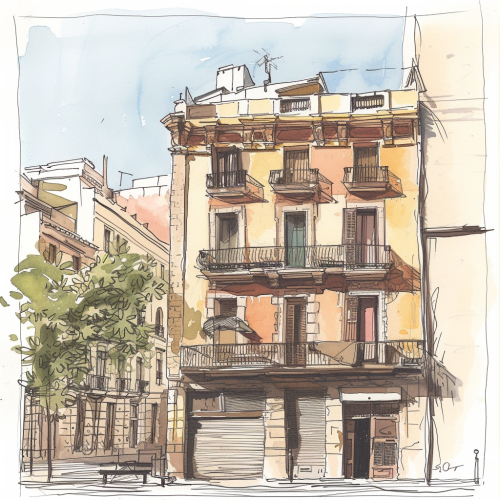 Barcelona, hand drawing, sketching, watercolour. --s 50 --v 6.0