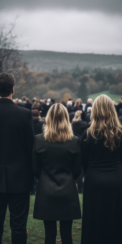 hyper relastic photo of a funeral with a band in the background, canon 40 --ar 2:1 --style raw