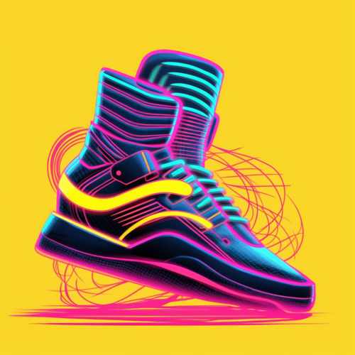 inline skates, yellow strokes, retrowave style --v 5.1 --no quad, quads, board, skateboard, man, woman, person