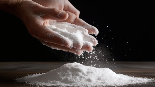 child gently sprinkling a small amount of iodized table salt from above onto a piece of paper, photography seamless --ar 16:9