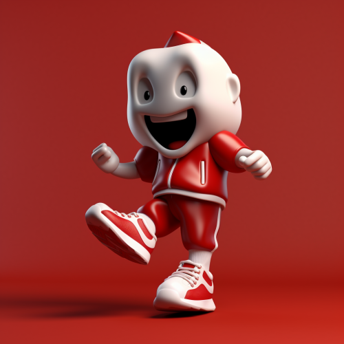3d render, cartoon style, tooth character wearing sneakers, dark red background